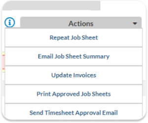 Update Invoices: If an invoice has been partially or fully paid, or the amount has been changed, the original invoice number will turn red. Click the tick box for the job and select ‘update invoice’ under the ‘Actions’ dropdown menu. This will turn the box green.