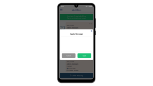When the crew receives the job offer through the Crewcard app, they will see an APPLY button instead of an Accept Job button. By tapping the APPLY button, they will be directed to the Apply Message window where they can enter a message to express their interest in the job and submit their application.