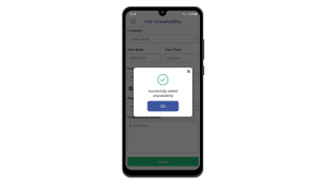 To edit the unavailability simply tap the edit icon alternatively you can tap delete to delete the unavailability.