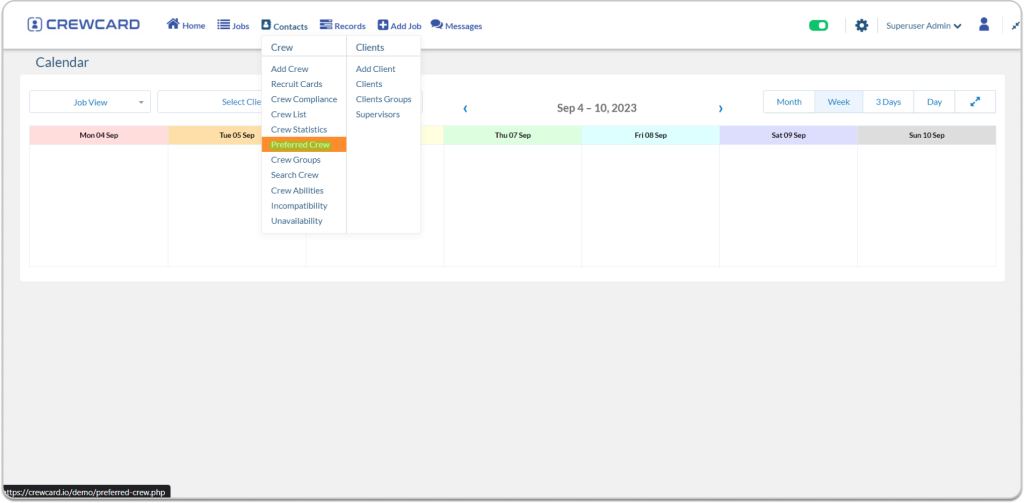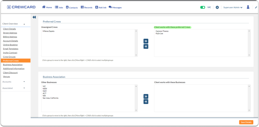 Client – Navigate to the client’s profile and choose “Preferred Crew” from the sidebar menu.