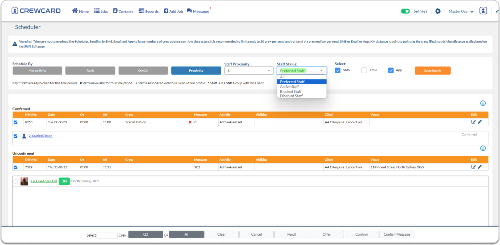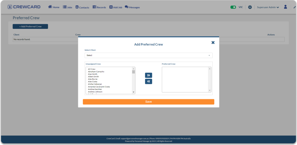 • If the crew isn’t assigned to a specific client, they will be visible in the preferred crew list, regardless of the client.
